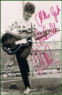 Eine sehr, sehr seltene farbige Autogrammkarte von Manuela und den