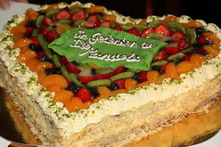 Das Spandauer Brauhaus stiftete eine riesengroße Geburtstagstorte, die von den beiden Damen der Blue Sisters angeschnitten und an alle Gäste des Gedenktreffens verteilt wurde. Die Torte war ein kulinarischer Höhepunkt und fand viel Beifall bei allen Anwesenden.