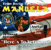 Für Manuela war es “Pflicht und Ehre” zugleich in der Radiosendung “Here´s To Veterans”, die von der Veterans Administratuion seit der 30´er Jahren in Zusammenarbeit mit der American Federation of Musicans wöchtentlich produziert wird, dabei zu sein. Manuela war auch gleich zweimal mit Wort und Gesang zu Gast. Die genauen Aufnahmen- bzw. Sendedaten sind leider nicht bekannt, dürften aber in den Jahren 1976/1977 liegen. Als Indiz dafür ist das verwendete Erkennungsjingle zu hören, aus dem Song “Paloma Blanca” der erst 1975 von der holländischen Baker Selection kreiert und zu einem Welthit gemacht wurde.