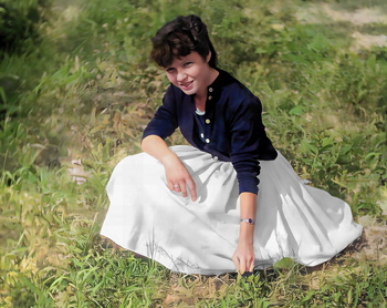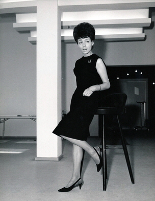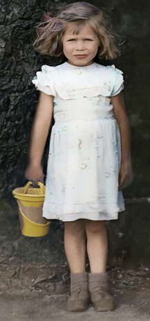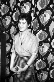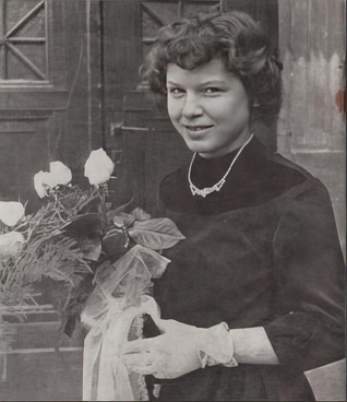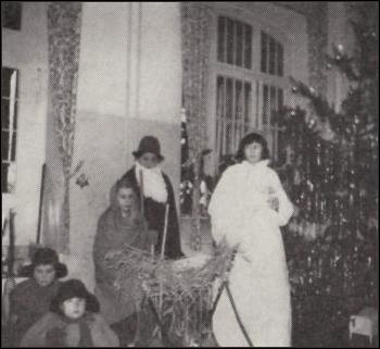 Schul-Weihnachtsaufführung im Jahr 1957 - schon damals zeigte sie ihr künstlerisches Talent im Gesang und Schauspiel. Hier spielte sie einen in weiß gekleideten Engel.