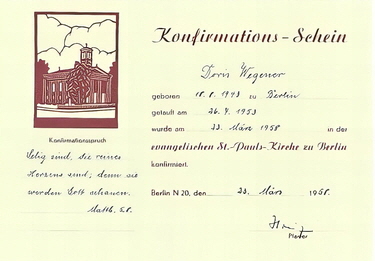 Der Konfirmations - Schein von Doris, datiert auf den 23. März 1958
