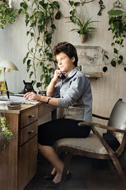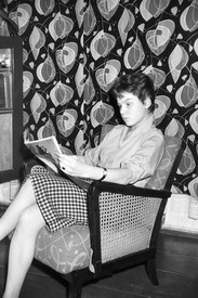Doris beim Schmökern in einer Modezeitschrift bei Muttern im Sessel