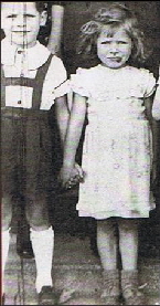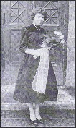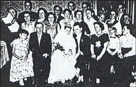 Doris (links und Pfeil oben) im hellen Blümchenkleid auf der Hochzeit von Schwester Ruth