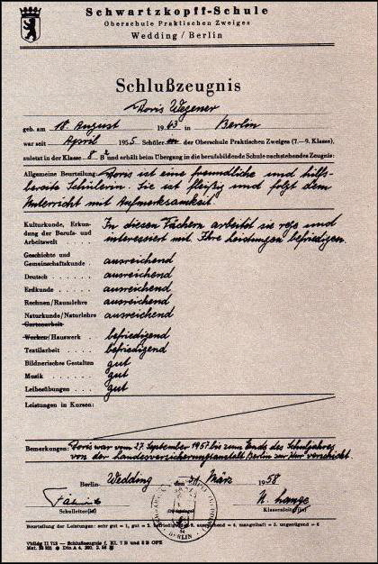 Die Abgangsbescheinigung von Doris für die Zeit ihrer Beschäftigung