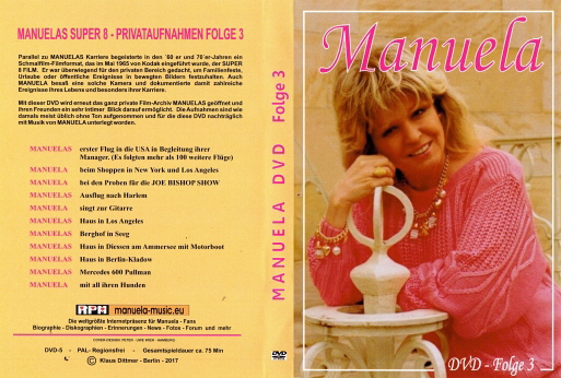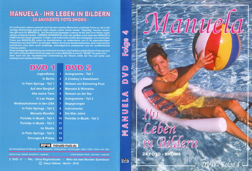 Das gab es noch nie !!! Das 1. singende Manuela-Foto- Album auf DVD. Diese DVD war im Handel nicht erhältlich und konnte nur über Manuelas Bruder, Klaus, in Berlin geordert werden.
