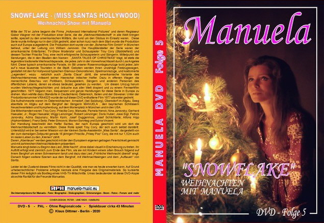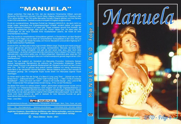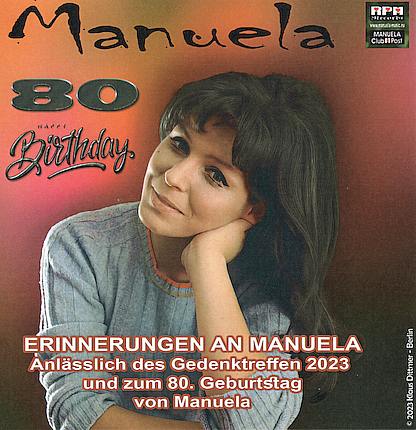 Diese DVD ist eine Hommage an Manuelas 80. Geburtstag (18.08.2023) und wurde kostenlos mit einer wunderbaren Pressemappe an die Besucher des 18. Manuela-Gedenktreffen am 19.08.2023 verteilt.