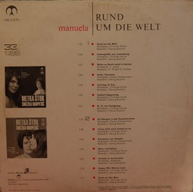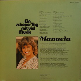 In den Anfängen der märchenhaften Karriere von Manuela wurden etliche Langspielplatten auch für den Südamerikanischen Markt - für die Deutschen Aussiedler - produziert. Diese LP´s wurden häufig mit dem gleichen Cover-Bild bestückt wie die LP´s in Europa. Nur auf der Cover-Rückseite und dem Schallplatten- Label kann man erkennen für welches Land die LP hergestellt wurde. Wir haben uns in solchen Fällen und bei schönen Rückseitenabbildungen entschlossen auch die Cover-Rückseite einzustellen und evtl. auch eine kleine Anmerkung zu schreiben.