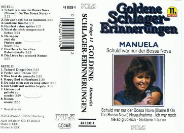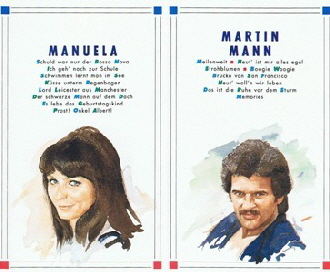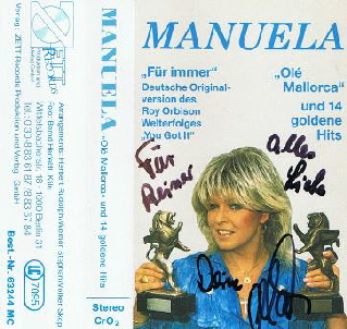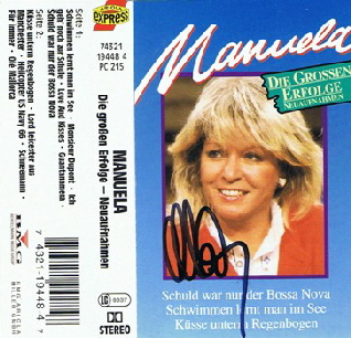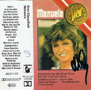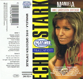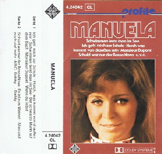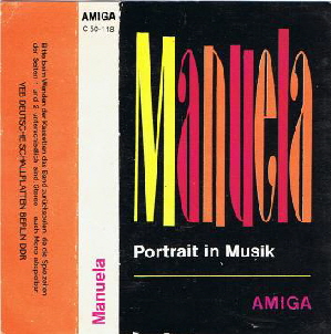 Sogar in der damaligen DDR wurde von Manuela eine MC - PORTRAIT IN MUSIK - veröffentlicht. Wie wir vor einiger Zeit erfahren haben, gab es diese in zwei Versionen. Auf der zu erst veröffentlichten MC sind 12 Erfolgslieder von Manuela und auf der später erschienenen ist die Seite 1 mit nur 6 Liedern von Manuela und die Seite 2 mit Liedern von Peggy March bestückt.