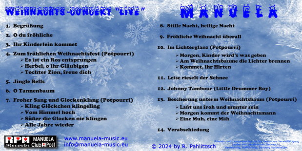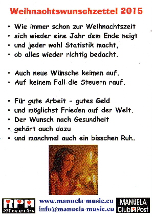 Die Manuela Weihnachts– und Neujahrskarten von www.manuela-music.eu