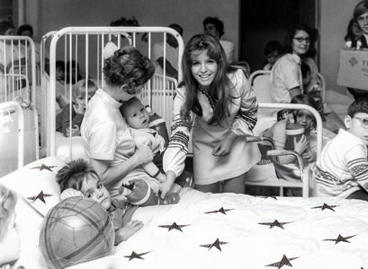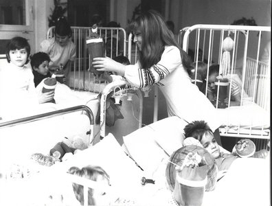 Manuela singt Weihnachtslieder in einem Berliner Kinderheim und alle Jungs, Mädchen und Erwachsene lauschen der Stimme Manuelas.